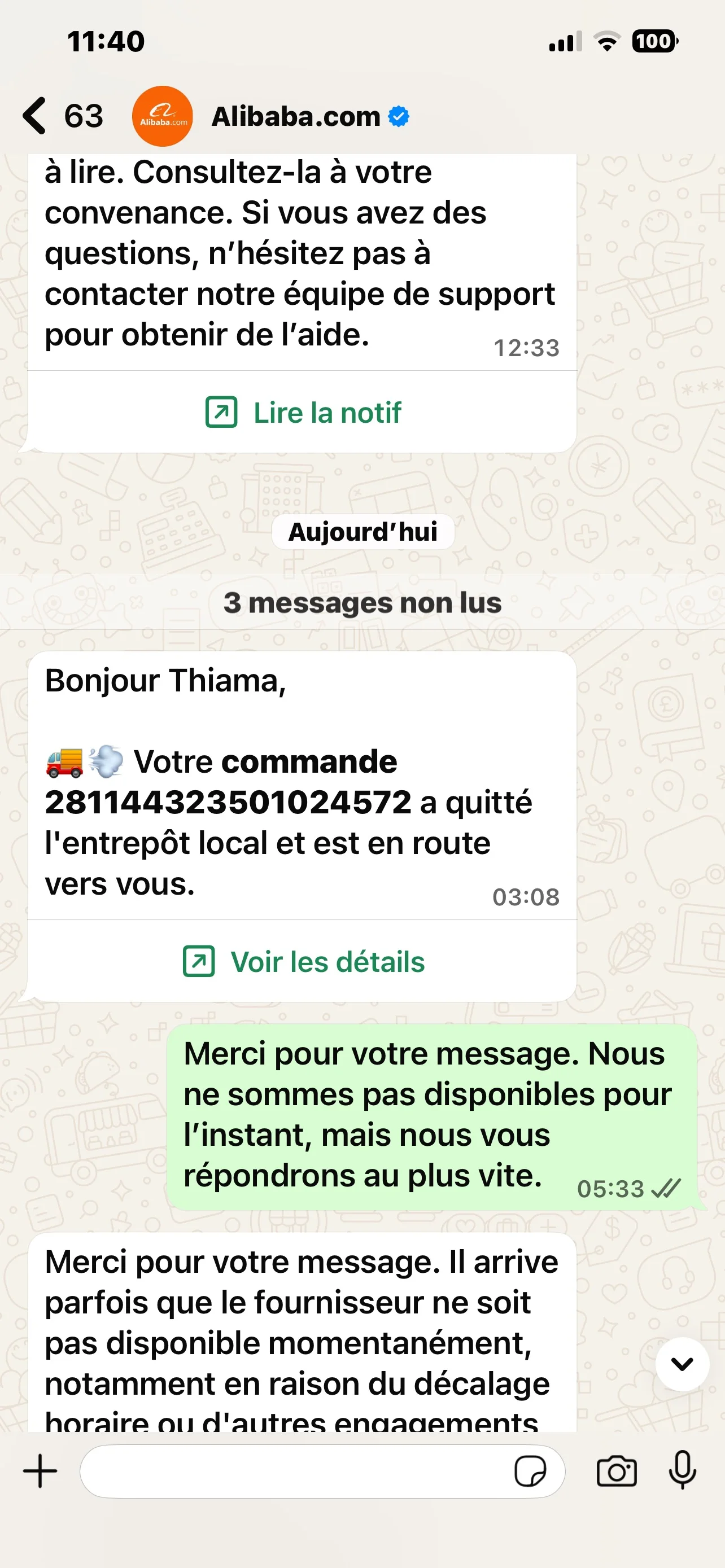 En fait c’est nul ça fait des semaines et des semaines envoie des messages pas de bonnes réponses, j’ai pas toujours vu mon collègue mon transitaire n’a rien reçu